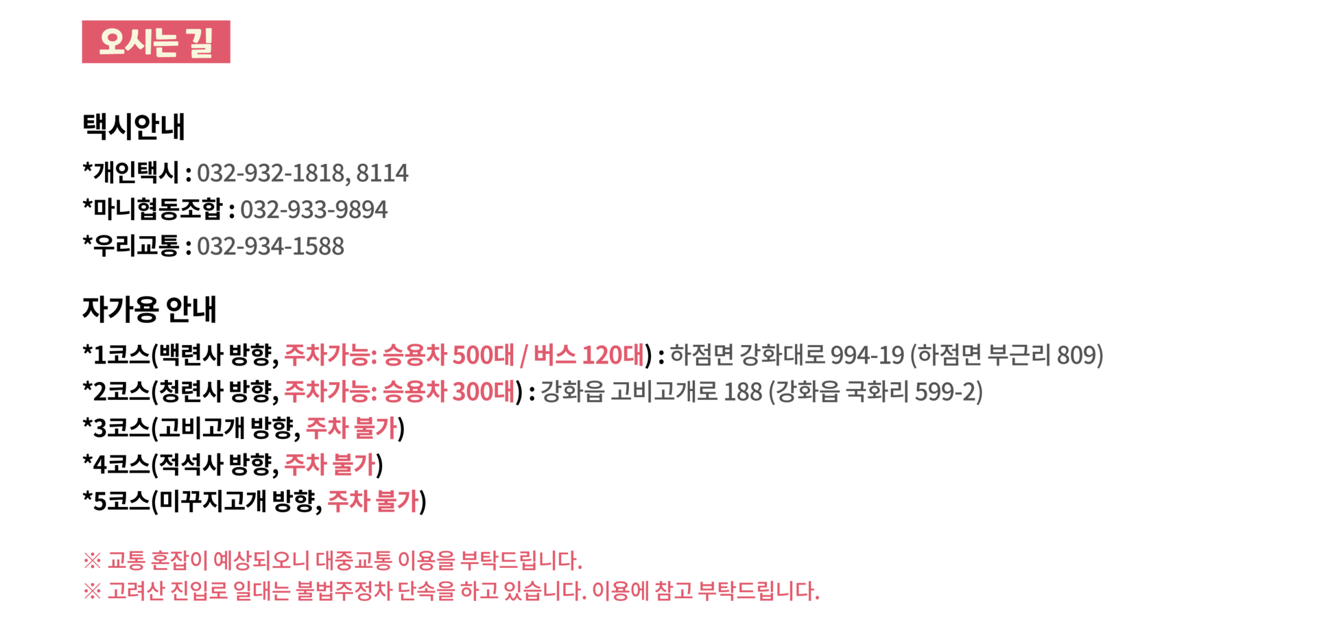 오시는 길